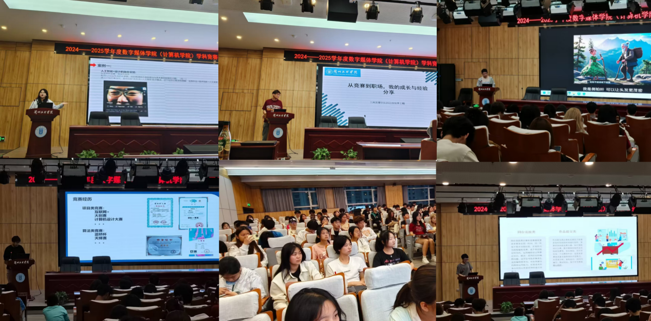 2025年5月22日晚19:30—21:30,数字媒体学院(计算机学院)在文昌楼 303 报告厅成功举办2024-2025学年学科竞赛经验分享会。数字媒体学院(计算机学院)教学负责人、部分专任教师出席此次会议。