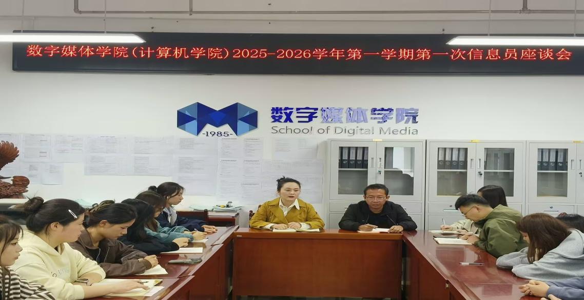 10月10日中午,数字媒体学院(计算机学院)于1-815会议室召开学院2025-2026学年第一学期信息员座谈会,教学科研办全体教师与23、24、25级各班信息员参会,会议由学院教学负责人主持。