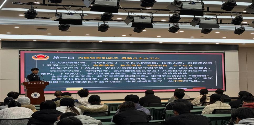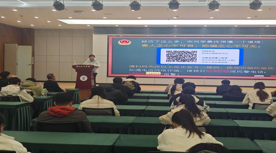 为切实守护学生财产安全,提升学生防网络诈骗意识,12月4日下午,学校保卫处联合雁园路派出所民警,面向数字媒体学院(计算机学院)师生,开展“提升识诈防骗能力”专题宣讲。