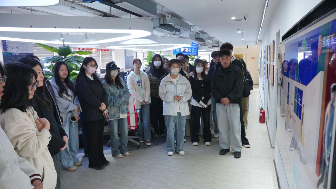 在企业相关负责人的陪同讲解下,师生一行先后参观了业务运营中心、综合功能区及成果展示区。企业负责人围绕运营管理体系、本地生活服务布局、数字直播产业生态等核心业务进行系统介绍,帮助同学们直观了解互联网传媒与数字经济平台的运作模式。