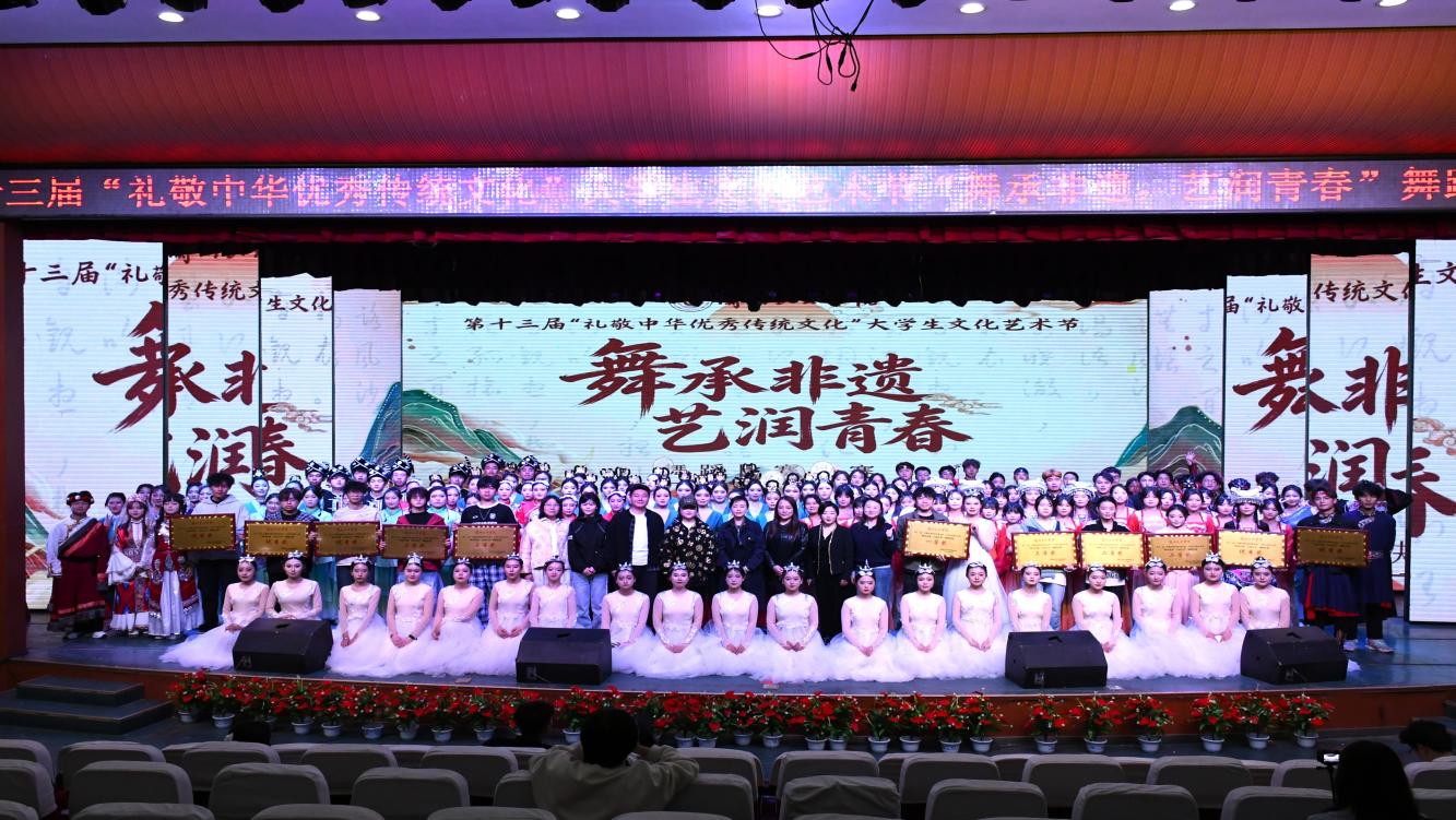 2026年4月21日晚,第十三届“礼敬中华优秀传统文化”大学生文化艺术节“舞承非遗,艺润青春”舞蹈比赛在实验剧场隆重举行,学院高度重视此次比赛,积极选拔优秀学子组建参赛队伍。
